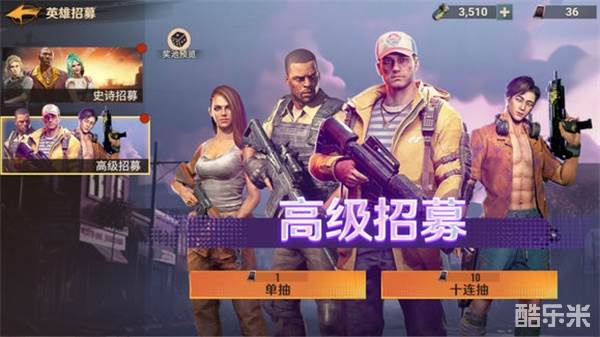 招募分为史诗招募和高级招募,史诗招募有保底必定获得史诗角色,高级招募获得的角色品级高但是没有保底。