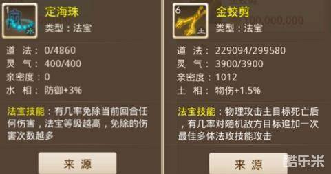 定海珠:有几率免除当前回合任何伤害,法宝等级越高,免除的伤害次数越多。