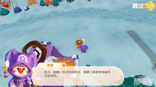 4、随后来到雪山山腰找茜茜,得知茜茜需要三条粑粑海肠。白天来到阳光牧场的神秘湖钓即可获得;