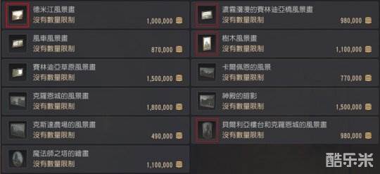 交换要用到其中的4种(标红),迪亚斯农场的画家莱奥得迪亚斯也有出售(价格一致)