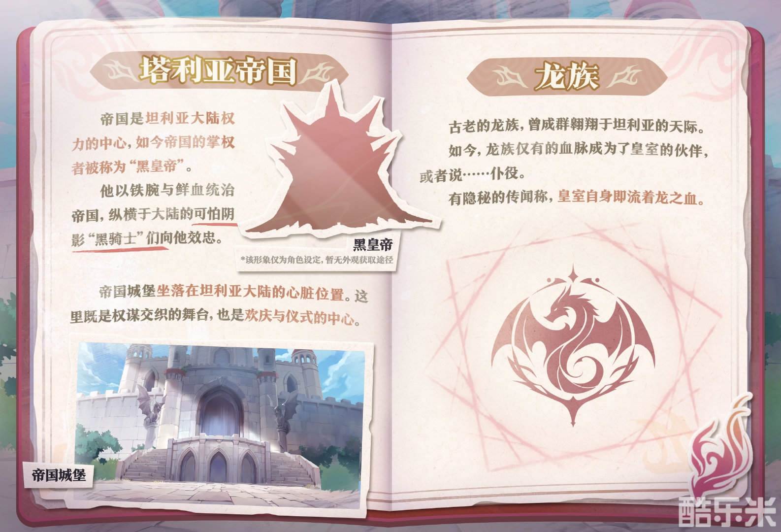 如今帝国的掌权者被称为“黑皇帝”,他以铁腕和鲜血统治帝国,纵横于大陆的可怕阴影“黑骑士”们向他效忠。另有一脉古老的龙族,他们在千百年前曾成群结队翱翔于坦利亚的天际,如今他们成为了皇室的“伙伴”。不过也有隐秘的传闻称,皇室自身即流淌着龙之血。