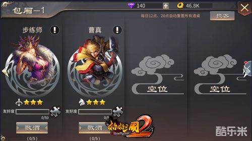 在《啪啪三国2》中,酒馆可是个鱼龙混杂的地方,各种谋士武将都在其中。主公们可在酒馆中招募各种武将。主公可以通过点击非空桌或者包厢进入酒桌,然后选择想招募的武将。武将在初次与主公们见面时,可能会稍显羞涩。主公可选择四种不同的酒,来增进与武将的友好度。情谊(友好度)满了,武将自然会跟随主公回家了。同时,从酒馆招募中,还能获得稀有武将的将魂。主公们,快来招募你的麾下吧!