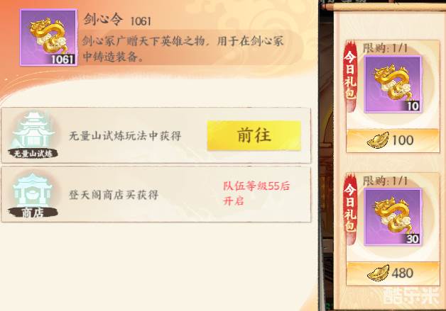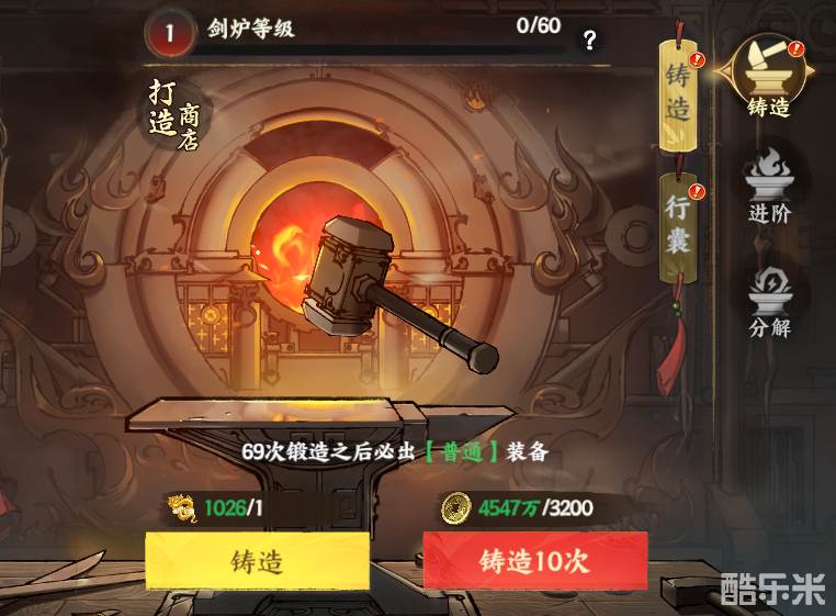 消耗【剑心令】和少量【铜币】进行单次铸造和批量铸造,必定会获得铸造产物。