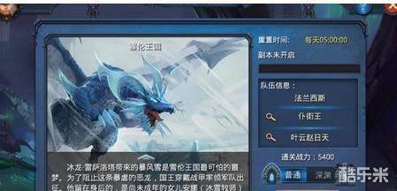 雪伦王国副本最终boss就是冰龙.雷萨洛塔,当然我们第一天接的支线任务,里面还是需要一起消灭两个小BOSS的。