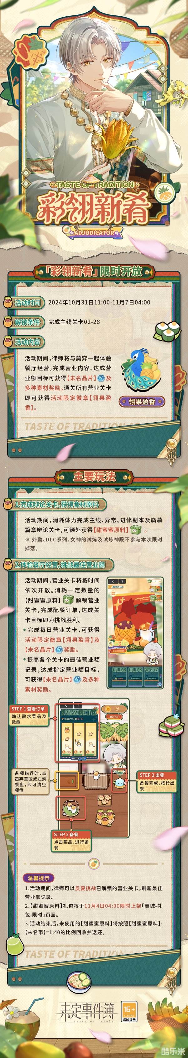 未定事件簿彩翎新肴怎么玩?很多的玩家都是不清楚这个新活动的,下面和酷乐米小编一起来看看吧