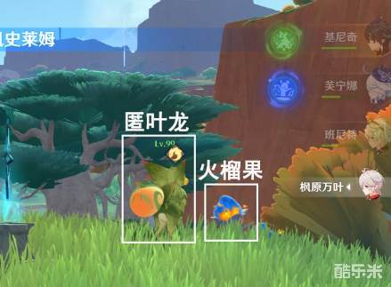 三、奇馈宝箱14:魂附匿叶龙,拾取火榴果,瞄准空中中间的风史莱姆