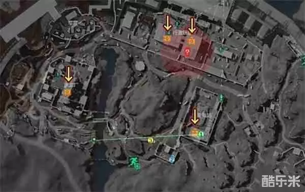 地图上的绿色小人图标代表撤离点。游戏的最终目标是从起点出发,安全抵达撤离点。