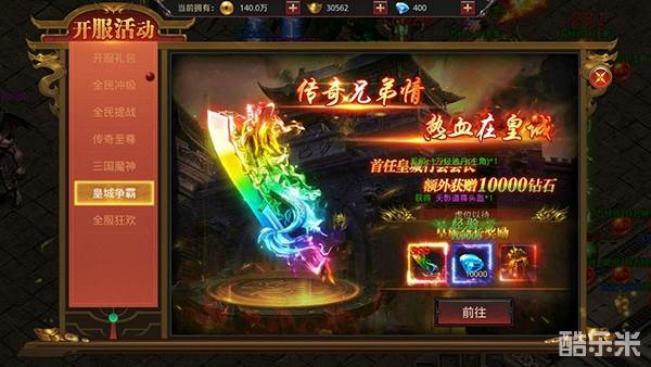 5、皇城争霸,城主专属七彩屠龙刀,绝版称号皇城霸主。