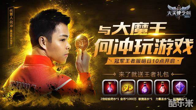 奇迹十五年,轻松更好玩,由韩国网禅奇迹MU正版授权的《大天使之剑H5》游戏最近已公布奥运冠军何冲作为其代言人,而大魔王本身就是游戏玩家,今日官方宣传将为大魔王何冲开启游戏IOS专服“冠军王者服”福利多多,惊喜不断!