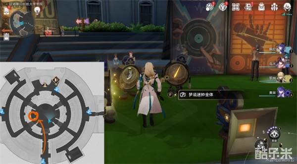 2、接着成功完成三处梦境迷钟解谜前往中央靠西侧的草坪处。