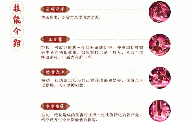 天女蕊的绝技会随机攻击敌方3个目标,不受站位限制,攻击方式较为灵活。