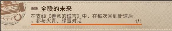 解锁条件:在“善意的谎言”第二幕,每次返回都需与火青、绿雪进行对话。