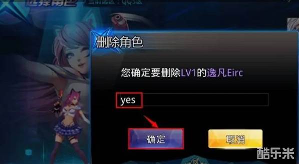 3、点击后会提示是否要删除角色,如果在对话框内输入yes点击确定就会删除