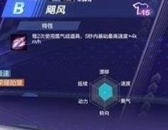 从六维性能图来看,飓风各项属性均良好,基础属性中集气方面较突出,搭配实用的赛车特性,适合在各种比赛中驾驶。