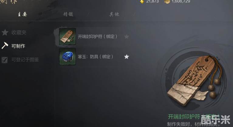 收藏夹:这里会优先展示已收藏的道具,方便玩家快速找到想要制作的道具,可以节省寻找道具的时间。每个道具的道具名称后都会带有一个小型的五角星图标,点击后即可将该道具收藏至收藏夹中,再次点击即可取消收藏。