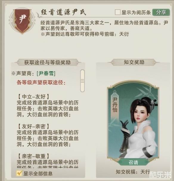 《剑网3》经首道源尹氏声望