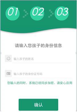 第六步:输入孩子身份信息。完成后点击“确认”。
