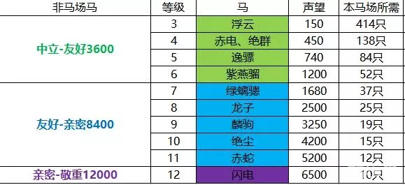 1、上缴任意马匹把声望提升到【友好】,之后需要提供对应等级的马匹;