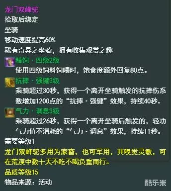 大唐军马场声望达到尊敬可以获得龙门双峰驼,那么剑网3大唐军马场声望怎么提升,上缴任意马匹把声望提升到【友好】,之后需要提供对应等级的马匹,接下来酷乐米小编给大家带来了详细的《剑网3》大唐军马场声望提升方法。