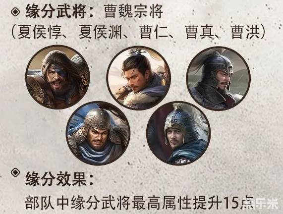 缘分武将:夏侯惇、夏侯渊、曹仁、曹真、曹洪