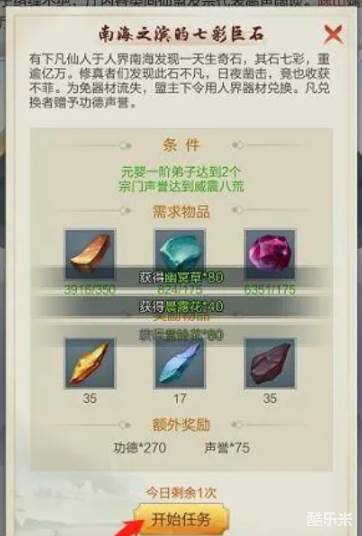 2、在宗门系统找到外事大厅,点击就会进入任务页面