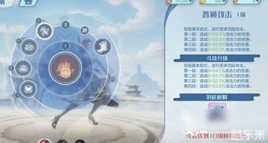 雅妃使用的武器是短笛,用这把武器进行普攻的时候雅妃最多可以打出四段攻击,前两段伤害的倍率都是相同的53.5%,相比其他斗者来说,她的前两段伤害就是最高的普攻伤害了,到后续再打第三第四段的时候伤害会逐步降低。