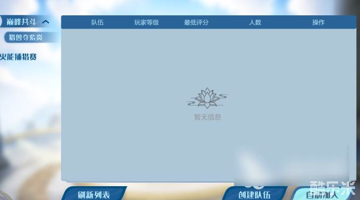 可以选择【猎兽夺紫炎】和【火能捕猎赛】两个比赛,去进行招募,点击右下角的自动加入,或者想要创建一个队伍来招募一些厉害的伙伴也是可以直接在这个页面找中去进行操作的,通常在招募之前,小伙伴们都需要搭配三个要上场的斗者才比较合适哦!