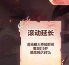 1、滚动延长:滚动最大持续时间会增加2.5秒,速度减少20%。