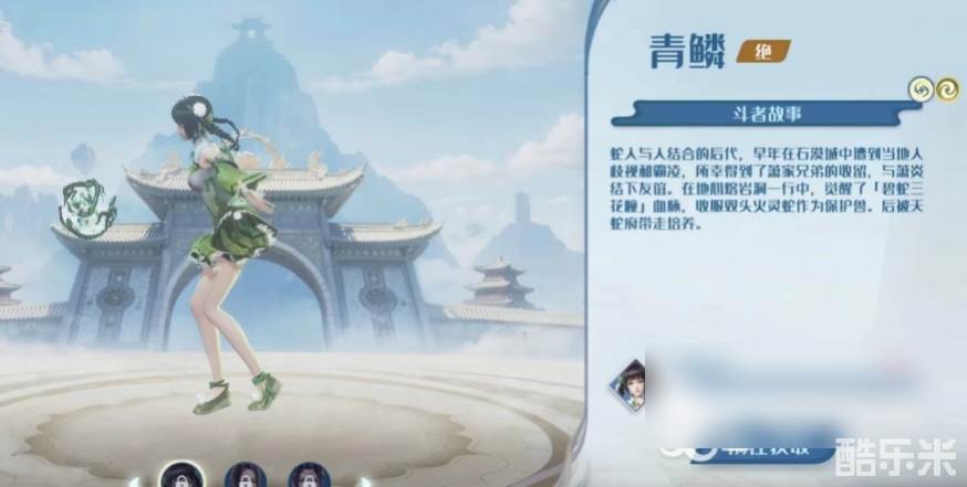 从背景故事来看青鳞在剧情中的戏份占比还是挺高的,她在前期就与萧炎建立了友谊,所以在前面的主线关卡中就有机会碰到她,不过她本身的品质是绝品,这种层次的斗者是游戏中资质最高的一批斗者,往往在属性和技能上都有着碾压级别的优势,因此想获取的话还是得老老实实通过唤灵来抽。