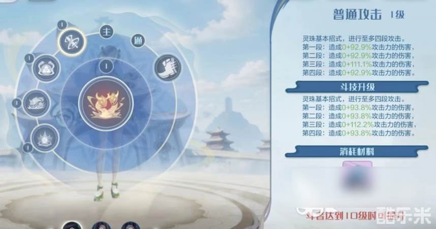 除了一二段普攻有92.9%的攻击力加成外,它的第四段普攻也有相同的加成,至于第三段普攻则来到了更高的111.1%水平,同时它每次升级带来的提升也很明显,每一级都能提升0.9%~1.1%的普攻伤害倍率。