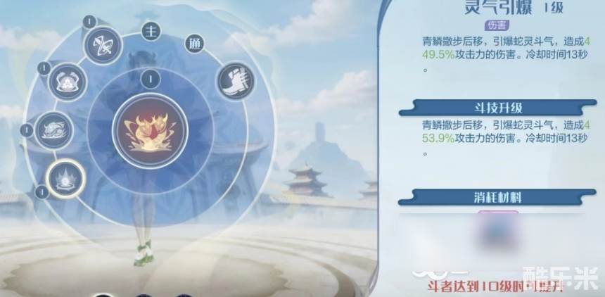 灵气引爆是青鳞的三技能,它有两个效果,第一个是撤步后移,后移的幅度还是挺大的,可以规避敌人的很多伤害,第二个效果则是引爆斗气以此造成449.5%攻击力的伤害,相比于一二技能它的爆发能力会更强,因此这个伤害是一次性打出的,穿插衔接在其他技能的间隙会打出不错的爆发。