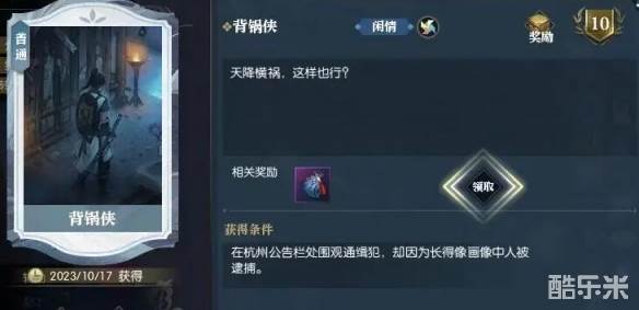 3、过一会就能直接触发卡片【背锅侠】并获得称号奖励;
