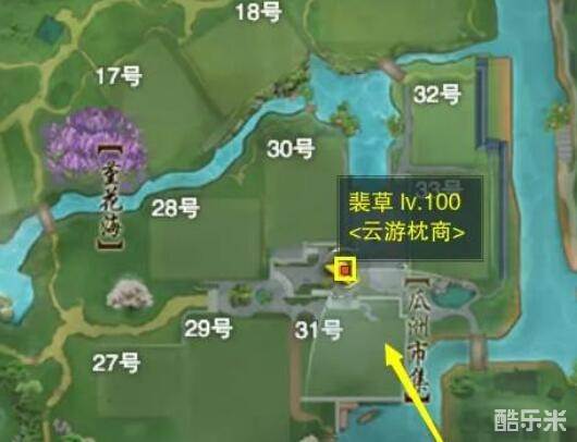 1、任意家园市集找到【裴草】,然后前往稻香村;