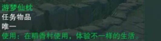 3、前往稻山野林使用背包里的【游梦仙枕】按1变为【凝血草】;