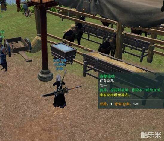 4、任意家园市集找【裴草】对话然后前往【扬州城南树林】找马商;