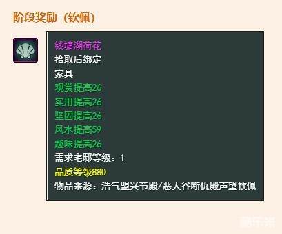3、当声望达到【钦佩】后可以获得家具【钱塘湖荷花】;