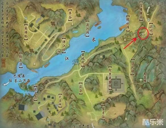 1、南屏山刷马点在右上方【小川】的旁边,玩家前往小川下方的路口即可找到刷马点;