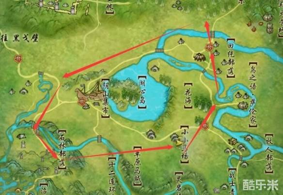 4、想要抓赤兔的玩家按照图示路线循环找即可。