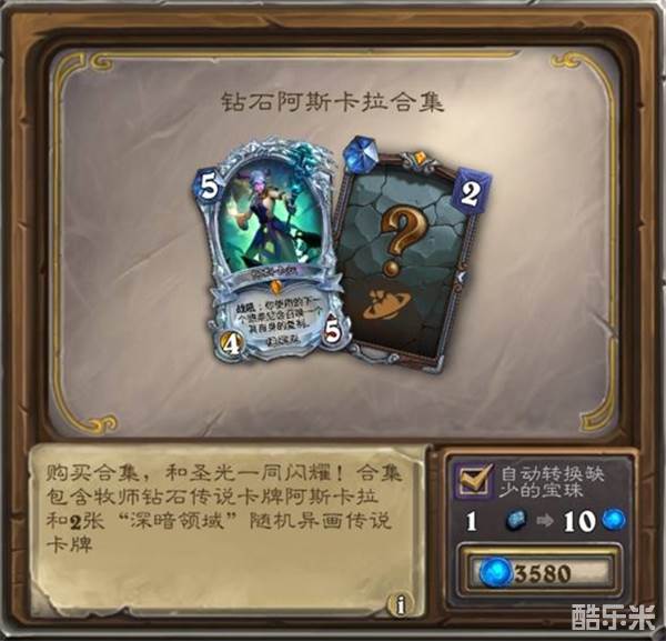 购买合集,和圣光一同闪耀!合集包含牧师钻石传说卡牌阿斯卡拉和2张“深暗领域”随机异画传说卡牌。