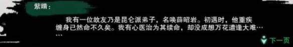 2、去广都镇找【药品商药昊圭】对话带【紫晴】回去找【楚辞岩】;