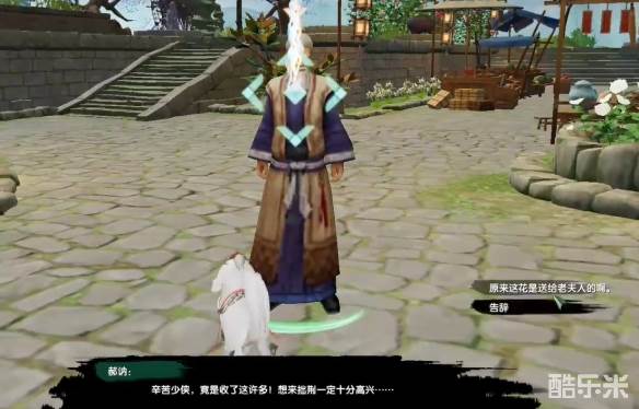 1、触发奇遇之后,玩家首先需要前往共居宅邸广陵邑的【瓜州市集】,在这里和郝讷对话,获得【芫花种子】。