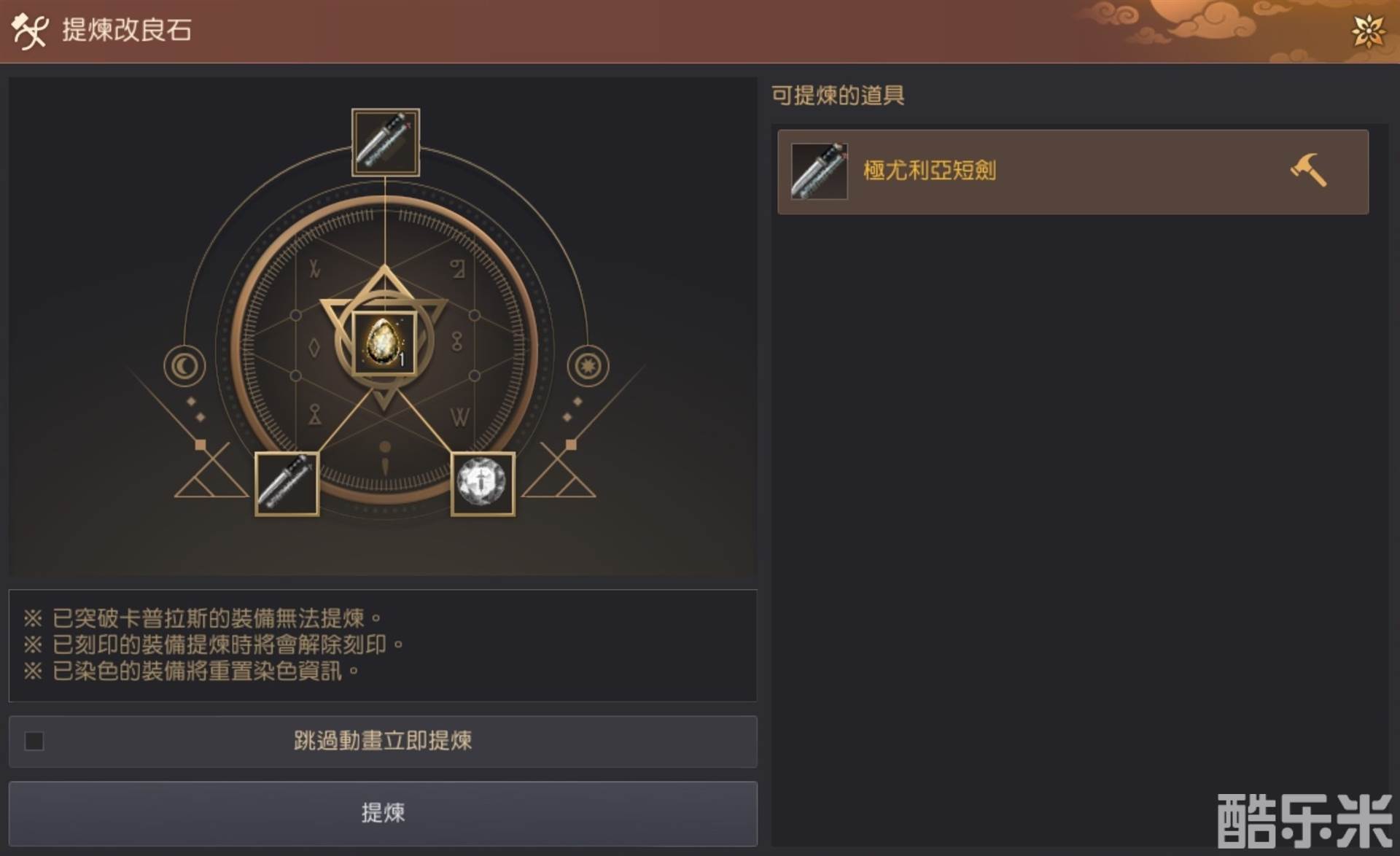 并按下提炼按钮,即可获得提炼出的改良石或材料和改良前的装备。