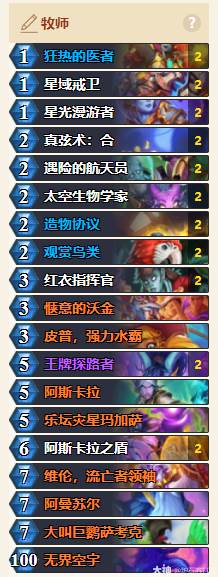 新版本牧师主推的是德莱尼体系,牧师的新卡就包含许多德莱尼随从,比较亮眼的是这张【迷惑生物图查】,由于下版本【雷纳索尔王子】就会退出标准模式,如果能触发迷惑生物图查的效果就能让对局获得巨大优势,因此大家也可以根据这点尝试去组控制牧的构筑。