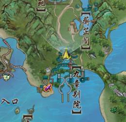 1、前往蓬莱九章别院和蘅芷阁之间的湖泊,在瀑布上方平台找到王吒。