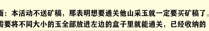 只需要将不同大小的玉全部放进左边的盒子里就能通关,已经收纳的玉可以再拿出来。玩法很简单,类似【七巧板】