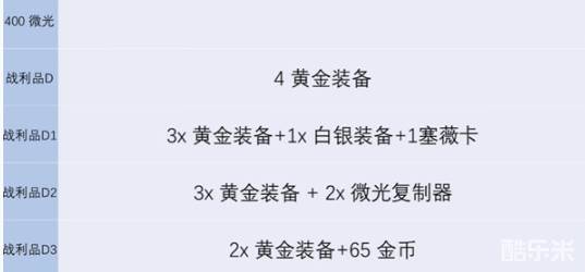 4、400层:最优奖励为D3,可以获得两件黄金装备和65金币。