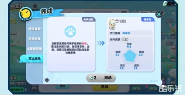 1、三十级以上的艾比才有成为继承者的资格,三十级以上且同种族的艾比则可以成为继承消耗。