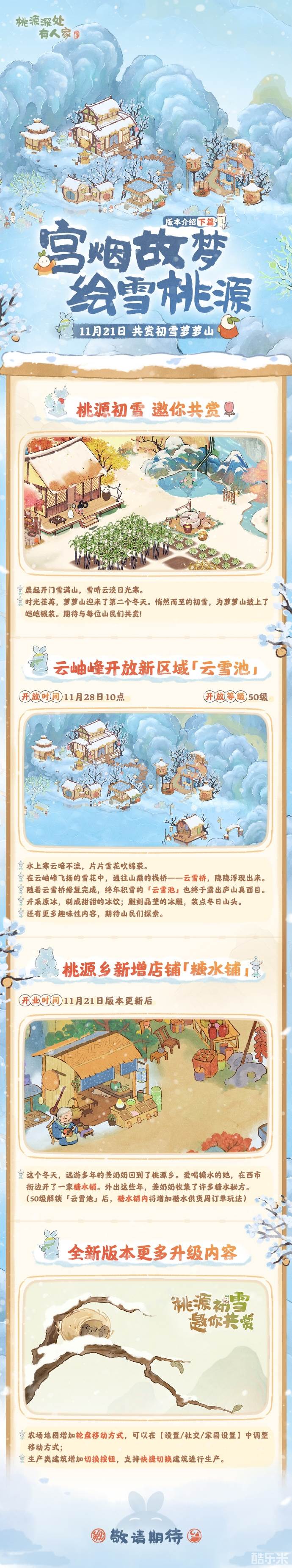 桃源深处有人家宫烟故梦绘雪桃源怎么玩?很多的玩家对于这个即将上线的新版本是不了解的,下面和酷乐米小编一起来看看吧