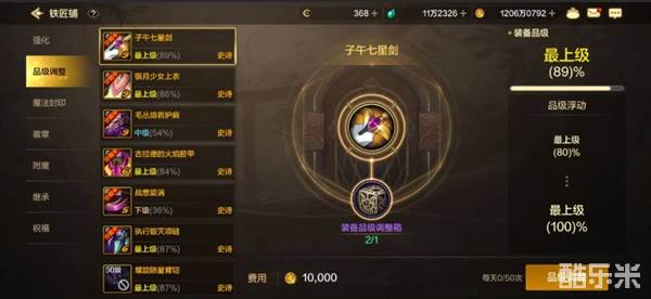 2、装备品级调整。建议兄弟们把装备品级都调整到百分之九十以上,装备品级调整箱可以在决斗商店兑换,千万不要花泰拉在拍卖行购买,因为拍卖行卖的很贵。