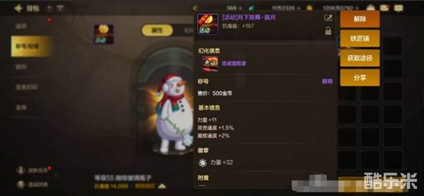 4、称号。首选导师套月下独舞称号,次选最初的勇士称号。